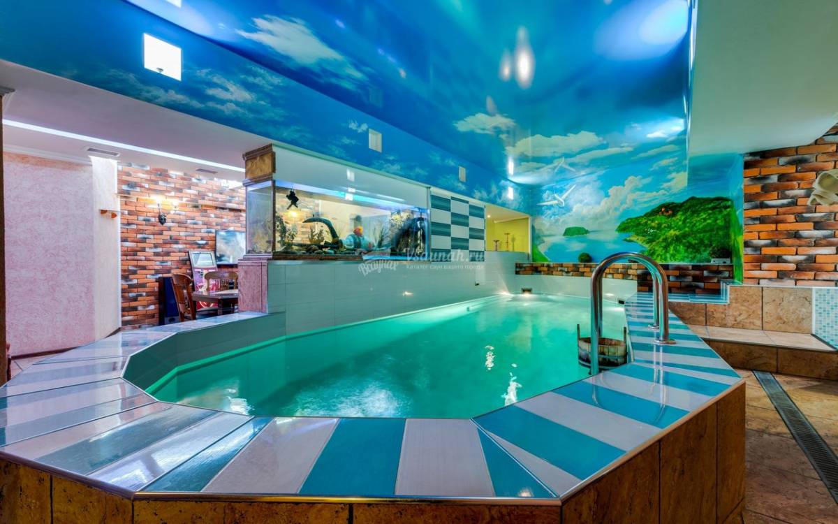 Бассейн с подсветкой, подогревом. Джакузи с гидромассажем. Веники.