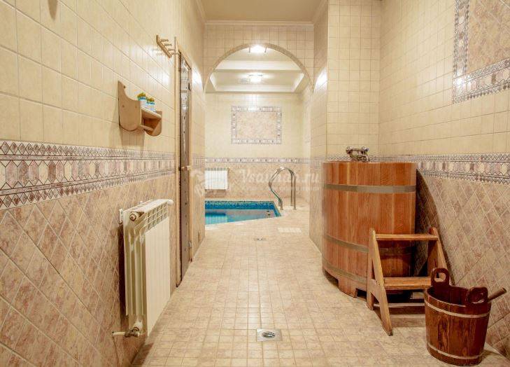 Купель. Бассейн с подсветкой, подогревом. Обливное ведро. Ароматные веники.