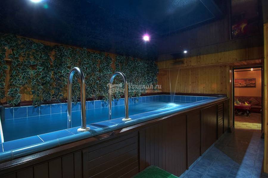 Бассейн с подсветкой.Есть веники. Банщик. Массаж.