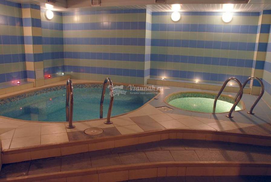 Бассейн с подсветкой и гейзером. Купель. Веники.