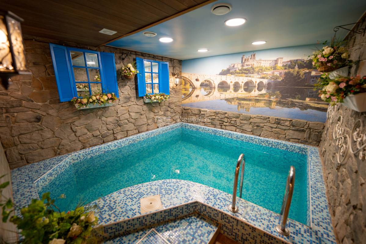 Здесь вы можете насладиться русской баней на дровах, открытым двориком, бассейном и комнатами отдыха. После напряжённого дня это идеальное место, чтобы расслабиться и забыть о повседневных заботах.