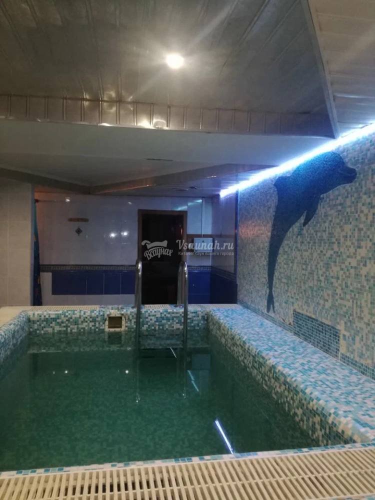 Не большая,но уютная сауна с бассейном,Рассчитана на компанию 6-8 человек.Это делает её идеальным местом для тихого семейного отдыха и дружеских посиделок.В атмосфере тепла и уюта вы сможете приятно провести время с пользой для здоровья.\nТакже есть выбор веников,банные принадлежности,кальян,зона отдыха с музыкой и караоке ,кухня и бар.\nРекомендую всем!