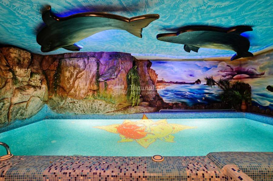 Бассейн с подсветкой, подогревом, гейзером. Гидромассаж. Веники.