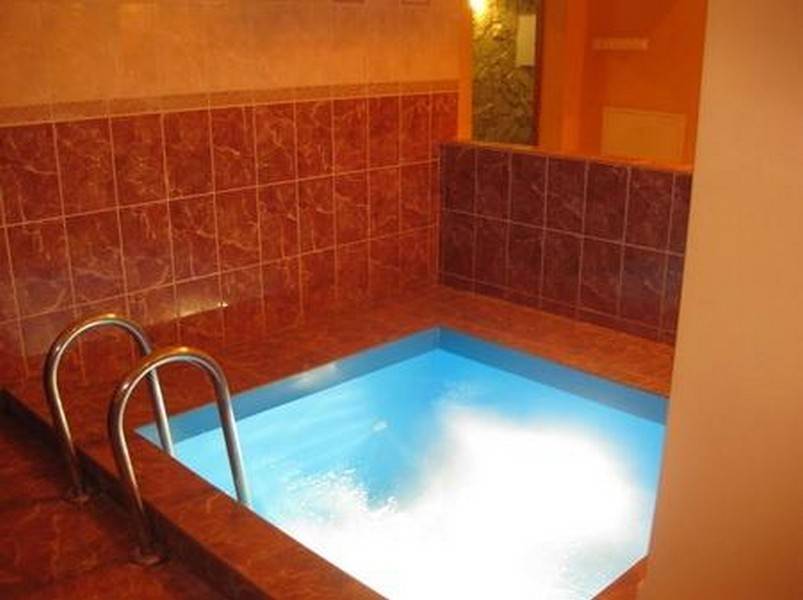 Бассейн с подсветкой. Веники. Банные принадлежности.
