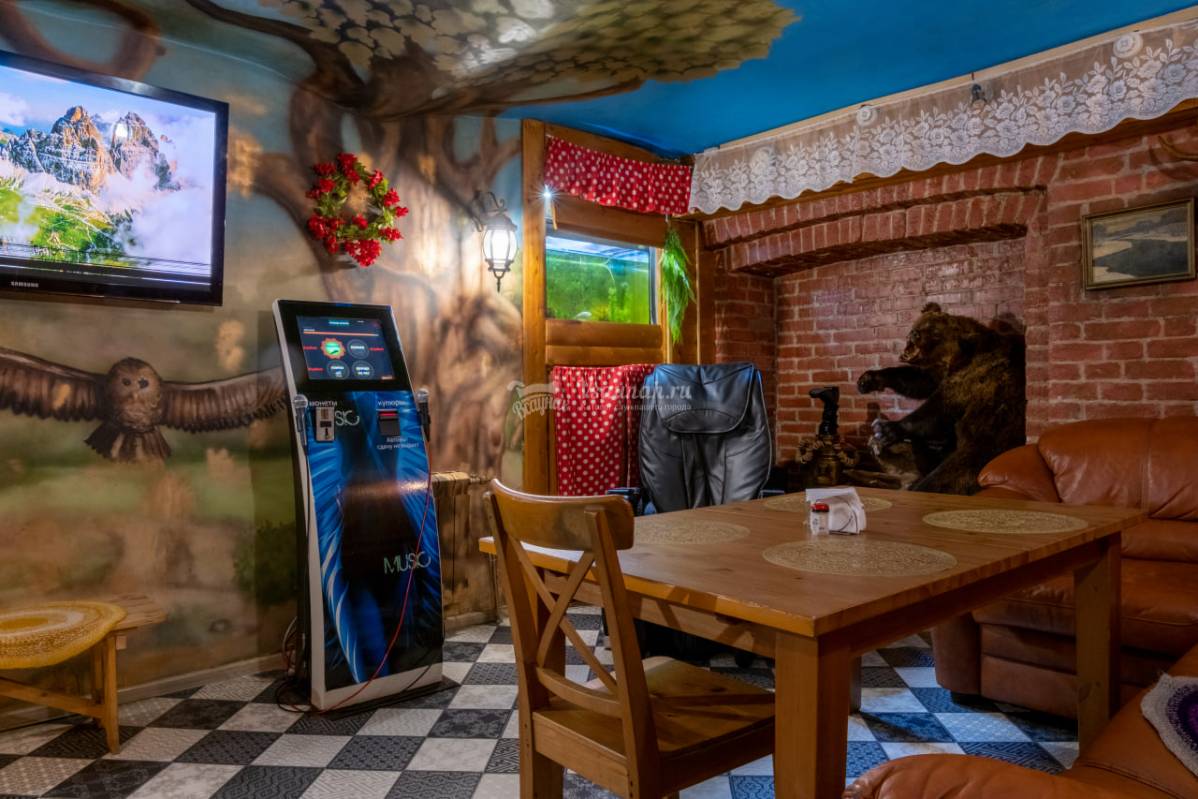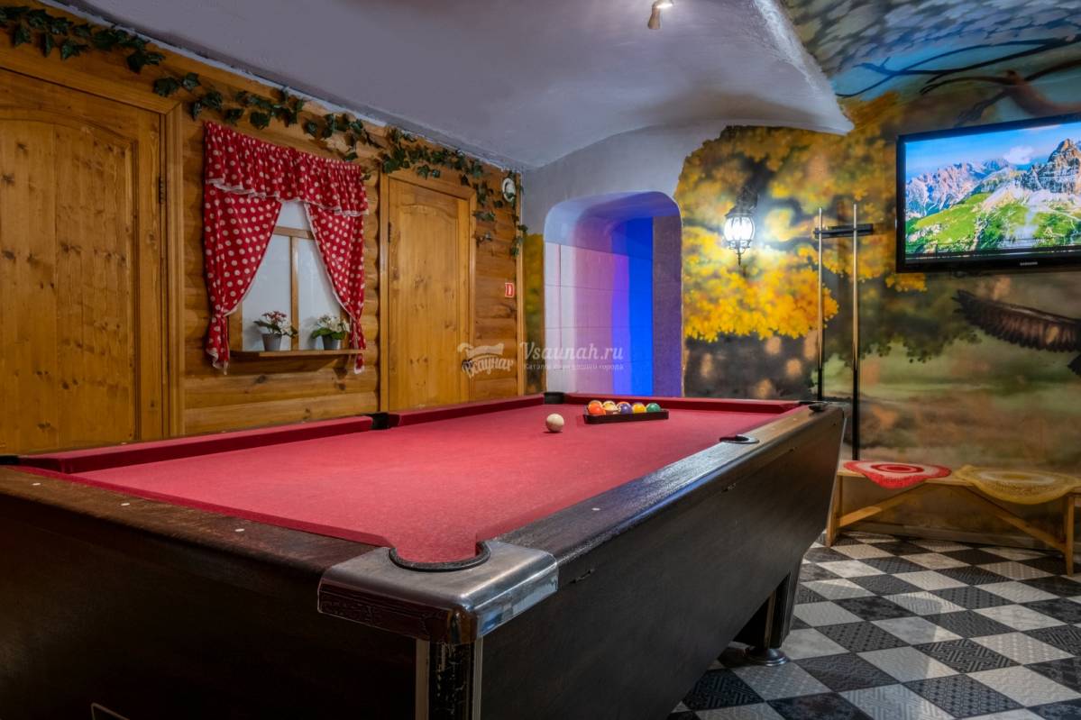 Финская сауна. Бассейн с подсветкой, гейзером. Ароматные веники. Банные принадлежности. Бильярд, ТВ, караоке, комната отдыха. Банкетный зал. Кухня: Русская, европейская, кальян, бар. Парковка.